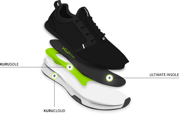 Alle KURU-sko (ja, til og med flipflopsene våre!) er konstruert med et unikt system med trelags støtte.